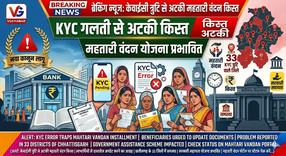 छत्तीसगढ़ में महिलाओं के लिए शुरू की गई महतारी वंदन योजना को लेकर नई चिंता सामने आई है। योजना के तहत मिलने वाली मासिक सहायता राशि की किस्त बंद होने का डर महिलाओं में बढ़ गया है। इसकी वजह KYC प्रक्रिया के दौरान नाम में मामूली गड़बड़ी बताई जा रही है।