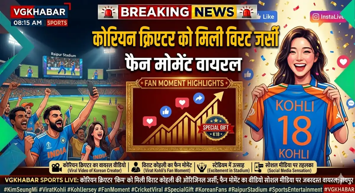 कोरियन कंटेंट क्रिएटर का विराट कोहली की जर्सी पाकर खुशी जताना क्रिकेट की वैश्विक लोकप्रियता को दर्शाता है। RCB की जर्सी को किस करते हुए खुद को “कोरियन RCB फैन” बताने वाला यह वीडियो सोशल मीडिया पर तेजी से वायरल हो रहा है।
