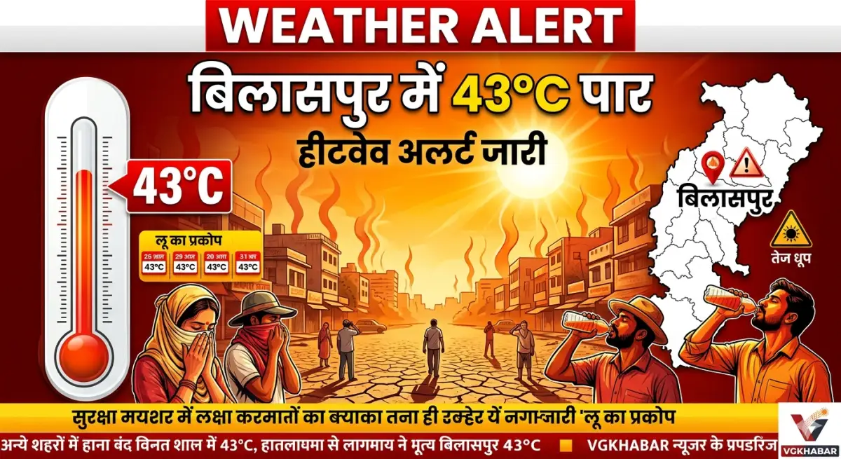 बिलासपुर में 43 पार, हीटवेव अलर्ट