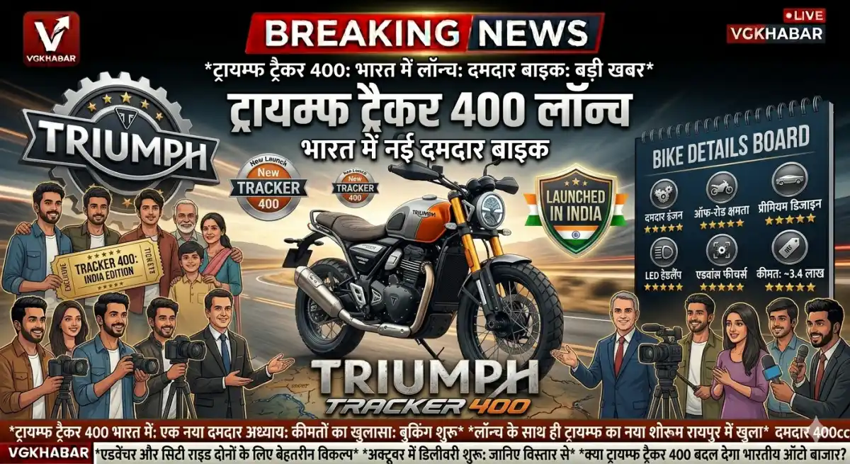 ब्रिटिश मोटरसाइकिल निर्माता Triumph Motorcycles ने भारतीय बाजार में अपनी नई बाइक Triumph Tracker 400 लॉन्च कर दी है। कंपनी ने इस बाइक को दमदार इंजन, मॉडर्न फीचर्स और आकर्षक डिजाइन के साथ पेश किया है। ट्रायम्फ ट्रैकर 400 की शुरुआती कीमत ₹2.46 लाख (एक्स-शोरूम) रखी गई है, जो इसे मिड-साइज बाइक सेगमेंट में एक मजबूत विकल्प बनाती है।